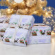 Klädjulklapp till kattälskaren eller kattdjurets ägare som visar en tecknad katt med julhatt och grönt-band med Julafton klockor som drar ett sleigh med söta kattungar på en julsnöad träd-lastad bakgrund. Vissa delar av bilden som används © Graphics Factory.com. sgb01