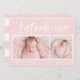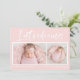 Rosa Foto Collage Birth Annountion för Watercolor Brush Calligraphy | Meddela att ditt glada paket har kommit med detta söta och visuella födelsemeddelande. Den har vit vattenfärgspenseltext, enkel typografi och två fotokollage på rosa. Anpassa genom att lägga till egna foton och detaljer. Andra färg finns tillgängliga.