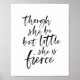 Snyggtens svarta penselskript med citatet "Även om hon är liten är hon hård" från A Midsommarens Night's Dream av William Shakespeare mot en vit bakgrund. *Observera att Zazzle Watermark som visas i zoomförhandsvisningen INTE visas på den färdiga tryckta produkten. © Rosewood and Citrus