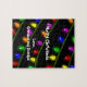 Detta beställnings- pussel har en stränga av färgrikt glödande julljus som slås in runt om och runt om det. Ljuset är lilor, orangen, gult, blått, grönt och rött.
