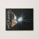 Bibeln med lysande stjärna och brev puzzel med ord av Gud