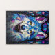 Detta är ett pussel av en varg. I bilderna visas en färgstark varg som bildats i ett nedfläckad glas stil, där färg är inriktat på vitt, blått och lila. Det här pusslet ger en underbar gåva till individer som kärlek djur, varger eller nedfläckad stil. Det här pusslets innehåll är lämpligt för personer i åldern 6+. Den är tillgänglig i alla storlekar och kan justeras av kunden.