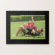 Det beställnings- pussel i vågrät formaterar med en svart ram som ska personifieras med eget primat av fotoet av älskade och text.