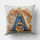 En lyxig, dekorativ A-emblem i guld med en kunglig krona och invecklad utsmyckning mot en rik blå bakgrund. Perfekt för varumärkesbyggande, lyxvarumärkning eller heraldiska projekt.