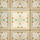 Konst och hantverk inspirerade mönster i en palett av färg som är typisk för perioden, med anpassade monogram. Mönster på medelhög : 3-tums fyrkanter i sidled.