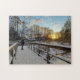 El sol dorado despidiéndose entre las ramas crea un contraste cálido con el paisaje helado, convirtiéndolo en una escena perfecta para disfrutar armando en casa.