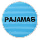 Roliga moderna dekorationer för barnrum. Pyjamas är skrivet i svart text. Himlens blåa ränder ljusblå bakgrund. Original Design © TamiraZDesigns.