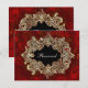 Elegant grafik inspirerad av ett antikt bordskort, utfört i en rik röd marmorerad färg, med en pyntat guldfärgad spetsoval ram för din text. Anpassa texten på framsidan och baksidan med bordnummer, gästernas namn eller låt den vara reserverad. Perfekt för eleganta kvällsdinrar eller bröllop.