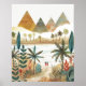 Förvandla din rymd med denna fängslande ökenlandskapsaffisch. Den suggestiva scenen visar antika pyramider, en slingrande flod, frodiga palmer och två figurer som promenerar längs en stig. Detta inbjuder betraktarna på en resa av fantasin. En blandning av varma och svala toner skapar en visuellt tilltalande komposition.