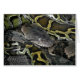 Burmesiska pytoner är ormar av mörk färgad med många bruna fläckar som korsas i svart bak