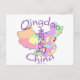 Qingdao i provinsen Shandong på ett färgat karta i China innehåller de kinesiska symbolerna för Qingdao och dess placering är märkt på karta med ett hjärta och flagga. En roligt, en unik gåva! Designad av Hendrika of RedThreadMaps.com