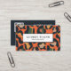 Modern, exotisk och imponerande djurtryckning: nätverkskort med digital bild av leopardhud i elegantens varma jordpalett av svart, orange, gult, grönt och beige med utrymme för QR CODE ELLER LOGOTYP på baksidan. Perfekt för skönhetssalonger, spa, kosmetologer, estetiker, dansstudioer, butiques, designers, hår och mode stilist eller andra medvetna professioneller.