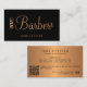 Trendigets moderna elegant barber shop manar salon QR CODE-affärskort med trendig chic typografi i svart och faux metallisk koppar guld. Lämplig för barberaffär, professionell barber frisyr, herrsallat. perfekten ++++++++++++++++++++ för professionell av elegantens snyggt. ++++++++++++++ Enkel att anpassa med ditt företag, namn, titel, kontaktinformation, social-mediekontakter och din automatiskt genererade QR CODE till webbplatsen, tjänstmenyn, fotogalleriet eller någon annan sida!