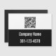 Den översta delen är vit. Magnet-kortet har en visning-image som du kan ersätta med rätt QR-kod. Grund-delen är svart och har vit visning som du kan redigera för att ange företagets namn och mobila nummer. All text kan redigeras eller tas bort.