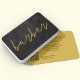 Minimal elegant för handskriftsskript svart och faux guld luxe modern barber stylist-affärskort med det automatiskt genererade QR CODE. +++++++++++++ Passande för frilansare, barbersalonägare eller anställda.
