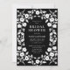 Fira med elegans och charm. Den svarta och vita inbjudningskort för möhippan har en vit handdragen blommigt ram i en romantisk folkkonst stil, delikat, konstnärligt och tidlöst. Den svarta bakgrunden i snyggten förbättrar den tunna utformningen, skapar perfekten för både avslappnad och formella sammankomster. Anpassa den enkelt till onlinen med din händelseinformation och använda den redigerbara QR-koden på baksidan för att länka till bröllop webbplats, register eller OSA. Välj förstklassig utskrift eller ladda ned omedelbart för digital delning.