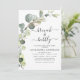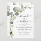 Brunch och BubLY Eucalyptus Greenery Succulent Botanical Watercolor Emerald Grönt Vår bröllop Möhippa QR Code Inbjudningar på vit bakgrund - innehåller vacker manustypografi och elegant med modernt botaniskt löv och grön för att den speciella Briden ska vara firande.