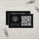 This modern black QR Code and company logo business card is easily customizable with your QR code, logo, and contact information.