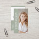 Make an instant, personal connection with this striking vertical business card design that dedicates most of the front to the individual's professional photograph. A chic, muted sage green vertical sidebar accents the photo and features the name in a modern, vertical orientation for a signature touch. The back uses the same stylish green and white color blocking, clearly presenting your logo, name, title, and all contact information, including a QR code for immediate digital networking.