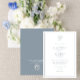 En klassisk, elegant, dammig, blå och vit bröllopsinbjudan i monogrammet, med manuskalligrafi. Perfekt för den moderna bruden att ha en formell affär. Spara kostnaden för lokalerna, med vår QR-kod på baksidan av inbjudan till OSA och Bröllop. Kontaktdesigner för matchande produkter. Visa Suite här: https://www.zazzle.com/collections/classic_dusty_blue_script_monogram_wedding-119331239619185308 Copyright Anastasia Surridge for Elegant Inbjudningskort, alla höger reserverade.