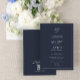 En klassisk, elegant marin, blå och vit bröllopsinbjudan i monogrammet, med skript-kalligrafi. Perfekt för den moderna bruden att ha en formell affär. Spara kostnaden för lokalerna, med vår QR-kod på baksidan av inbjudan till OSA och Bröllop. Kontaktdesigner för matchande produkter. Copyright Anastasia Surridge for Elegant Inbjudningskort, alla höger förbehållna.