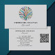 Det här affärskortet är dekorerat med ett färgstarkt mosaiskt livets träd-mönster på blekens grått-bakgrund. Anpassade enkelt med information och QR-kod. Med användan Redigera alternativ kan du ändra texten storlekt, stil eller färg. När vi skapar vår teckning hittar du inte den här bilden från andra designers. Original Mosaic © Michele Davies.