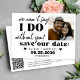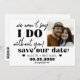 Simple black and white trendy bold typography wedding funny casual engagement photo wedding save the date card with a fun "we can't say I do without you" modern handwritten calligraphy script quote.