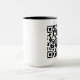 Platziere deinen QR-Code von www.qrcode-monkey.de auf einer Tasse und gestalte wahlweise Farben und Texte.