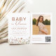 Minneshögtid för en ny mängd glädje med ett vackert Baby i den tematiska babyduschen i Bloom. Gå med oss för en eftermiddag fylld med kärlek och lycka när vi hedrar de blivande föräldrarna. Inbjudan innehåller en fantastisk terracotta - brinnad orange som accentueras av en mängd levande vilda blommor.