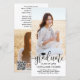 Dela glädjen av en gymnasie- eller högskoleexamen med eleganta kombinerade annonserings- och inbjudningskort med två foton och en anpassad QR-kod. Med detta nedladdningsbara kort kan du meddela examen och tillhandahålla ytterligare foton och detaljer via en online-plats du väljer, till exempel en webbplats, sida på sociala medier, digitalt meddelande, festinbjudan eller fotoalbum. Beroende på hur det är konfigurerat kan länken ge en plats för vänner och familj att skriva ett online-meddelande, ge en gåva via en betalningsapp eller se mer information, till exempel festdetaljer och RSVP. Den moderna svart-vita designen har en studentmössa, trendig script-calligrafi, elegant klassisk typografi och två foton som du väljer, till exempel seniorbilder eller bilder från examensceremonin. Bilderna och texten på denna mall är enkla att anpassa och färgerna är lätta att ändra med hjälp av Zazzles designverktyg. Detta snygga nedladdningsbara vertikala examensbevis-kort är ett stilrent sätt att med