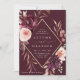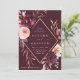 Den här bröllopsinbjudan innehåller en vattenfärgsblomkrans av dahlias, trädgårdsodling och ro och peony i burgundrött, maron och rosa över höst löv med en faux guld diamantform ram och bröllop, QR-kodlänk på baksidan. Om du vill ha en mer avancerad anpassning av den här designen klickar du på BLUE DESIGN VERKTYG. Matchande objekt är också tillgängliga.