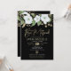 Var stolt, gläd dig och visa upp denna milstolpe för din favorit Bat Mitzvah! Skicka ut denna sofistikerade, moderna, personliga QR-kod inbjudan till ett evenemang att minnas. En chic, fantastisk, vit och falsk guld glitter blomster vattenfärg med falsk guld folie skript typografi och vit sans serif typ överlagrar en dramatisk svart bakgrund. På baksidan, ytterligare vattenfärg blommor, en falsk guld David-stjärna och en skannbar QR-kod för mer information överlagrar svart. Anpassa den anpassade texten med din Bat Mitzvahs namn, datum, lokal information och webbadress. Garanterat att tillföra stilfullt kul till hennes speciella tillfälle!
