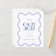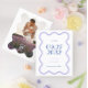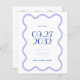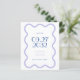 Detta bröllop sparar datuminbjudan har en vågig kant. Den använder lugna färger som lavendel inspirerad av lavendelfält. De roliga och stiliga teckensnitten lägger till en touch av elegans, och orden i mitten är markerade i ljust blått för en rolig färgklick och använder en större teckenstorlek. Dessutom kan foto och qr-kod på baksidan anpassas.