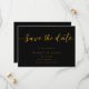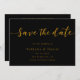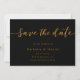 Den här eleganten är det senaste kortet för spara och guld i bröllop är perfekt för ett modernt bröllop. Den enkla designen har guld-kalligrafi i elegant på en svart bakgrund. Kortet innehåller också en QR-kod för bröllop webbplats på baksidan.