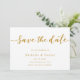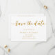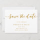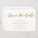 Det här eleganten är det senaste kortet för spara och guld bröllop är perfekt för ett modernt bröllop. Den enkla designen har guld-kalligrafi i elegant på en ren vit bakgrund. Kortet innehåller också en QR-kod för bröllop webbplats på baksidan.