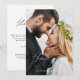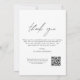 Tack, bröllop, ni kort som har ett foto på framsidan och baksidan. Tack-korten innehåller en modern, vit- och svart, kursiv skripttypografi som är elegant, enkel och modern till använda efter att du har minimalistisk enkel bröllopsdag firande.