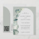 Elegant trendig salvia grön budgetvänlig allt-i-ett bröllopsinbjudan med bohemisk botanisk valv, enkel typografi skript och din (automatiskt genererad) QR-KOD till webbplats, online RSVP, boende och riktningsinformation. ++++++++++++++++++++++ VÄNLIGEN LÄS DETTA INNAN DU KÖPER! Detta är ett budgetvänligt bröllopskort tryckt på ett pappersark (varje ark har ett kort). ++++ För det bästa förhållandet pris-kvalitet är vårt råd att välja Semi-Gloss-pappertypen (den är tillräckligt tjock för att användas för brevpapper) ++++ Om du behöver kuvert, välj KUVERTERALTERNATIV. +++ Dubbelkontrollera all information och stavning av din text eftersom du kommer att få exakt vad du ser - ingen annan kommer att kontrollera någonting innan utskrift. ++++ Detta kort är designat för storlek 11,4 cm x 14,2 cm. Om du väljer en annan storlek på kortet