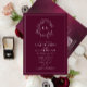 QR-kod Burgundy Leafy Vapensköld Monogram Bröllop Inbjudningar