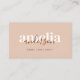 Det här affärskortet har en snyggt och modern design med en mjuk bakgrund. Framsidan visar namn i ett fet serif-teckensnitt i kombination med en övertäckning av eleganten som skapar en chic. Rubriken visas nedan i ren, minimal text. På baksidan visas samma namn stil högst upp, följt av en stor QR-kod på den lämnat och nyarrangerade kontaktinformationen med ikonerna på högerna, åtskilda av en tunn lodrät. Det övergripande utseendet är elegant, professionell och perfekt för en professionell för skönhet eller kreativ.