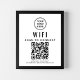 Modern och enkel poster-skylt som gör det möjligt för dina kunder, kunder eller gäster att enkelt ansluta till ditt WiFi-nätverk. Ladda upp din logotyp och WiFi QR-kod och lägg till ytterligare information, t.ex. nätverkets namn och lösenord.