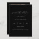 Chic Romantic Script Bröllop spara datum-meddelande med din bild och bröllop-webbplats QR-kod på baksidan på en svart bakgrund.
