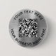 Enkel kampanjknapp för ditt företag eller din organisation med en borstad silver-faux-bakgrund. Lägg till din QR-kod eller logotyp och två linjer anpassad text, t.ex. ditt företag namn, slogan, tack eller lämna tomt.