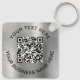 Enkel PR-nyckelkedja för ditt företag eller din organisation med en borstad silver-faux-metallisk bakgrund. Lägg till din QR-kod eller logotyp och två linjer anpassad text, t.ex. ditt företag namn, slogan, tack eller lämna tomt.