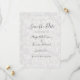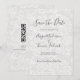Vackra vita snöre-bakgrunden med grått-kalligrafi-format sparar datumkortet. Lägg till webbplatsen bröllop med QR-koden på baksidan och texten.
