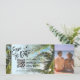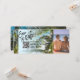 Destination Beach Bröllop Boardingpass Biljett Guld Plan Spara datum med hjärta och plan ikon med enkel minimalistisk linje konst världskarta och palmkust bakgrund Lägg till ditt foto och QR-kod