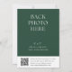 Dela med dig av ditt förlovningsfoto och din bröllapswebbplats i en sammanhängande design med detta dubbelsidiga 5x7 fotokort som är skapat för att passa ihop med en vellumbröllopsinbjudan eller vellum "spara datum"-kort. Framsidan har ett vertikalt foto, medan baksidan har plats för en andra bild tillsammans med din bröllapswebbplats och en anpassningsbar QR-kod så att gästerna enkelt kan svara eller se evenemangsinformation. Denna design kombinerar dina förlovningsfoton med praktisk information i ett rent, modernt format. Perfekt för moderna, romantiska eller tidlösa firanden, detta QR-kod bröllopsfotokort lägger till både stil och funktion till din vellumbröllopspapper.