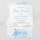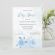 Den här söta baby shower-inbjudan har blå metalliska tribal-sköldpaddor och snäckor på en blå och guld bläck-marmorerad bakgrund. Med en skannbar QR-kod på baksidan. Den är lätt att ändra, radera bara exempel-URL:en och lägg till URL:en till din presentregistreringssida.