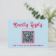 Ett enkelt och elegant kalligrafiskt färgat bröllop OSA-kort. Det har en vintage modern unik himlar-blå bakgrund med magenta levande, djärvt skript. Med anpassadet QR-kod. Minimalistisk och chic med handskriven text. Allt går att redigera genom att klicka på knappen Anpassa.