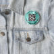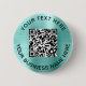 Modern och enkel reklamknapp för ditt företag eller din organisation med en borstad myntbakad grönt för metallisk bakgrund. Lägg till din QR-kod eller logotyp och två linjer anpassad text, t.ex. ditt företag namn, slogan, tack eller lämna tomt.