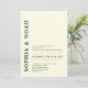 Den här inbjudan innehåller en sofistikerad bakgrund av elfenben med minimal design. Parets namn framhävs med fet, elegant typografi, vilket tillför inbjudan en del modern elegans. Baksidan har QR-kod och initialer i monogram.